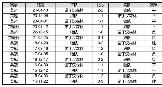 诺丁汉森林 VS 狼队两队近10年的交战次数为14场,诺丁汉森林2胜6平6负,赢球概率为14.3%,平局概率为42.9%,输球概率为42.9%。