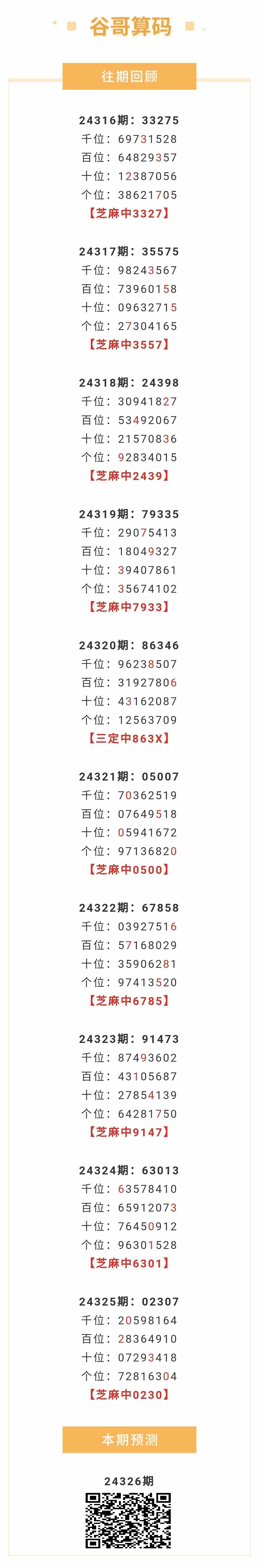 【排列五-326期】本月圈中4次芝麻,芝麻近10中9;上期芝麻中0230 发表于:2024-12-05 16:59:17 浏览次数:432 上一篇: 下一篇:没有了 【春哥打奖】 范围码15红10 点播26031期 【志存高远1】 范围码15红9 点播26031期 【彩女】 范围码15红9 点播26031期 七星彩杀码荣誉榜