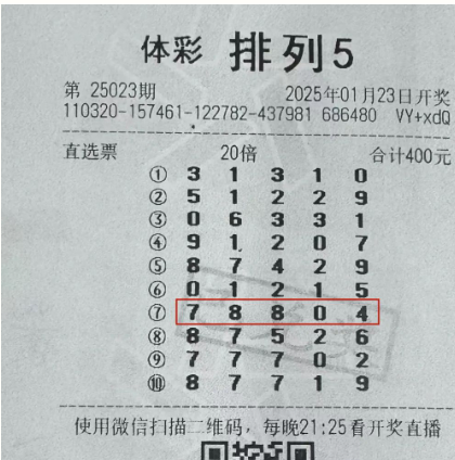 当天,刘女士不仅购买了10注大乐透,还随机选择了10注排列5并进行了20倍倍投。当晚,排列5第25023期开奖,中奖号码为“78804”,刘女士的第7注号码命中了这一结果。由于进行了20倍倍投,她的奖金总额达到了200万元。自体彩排列5推出以来,凭借简单且易中奖的特点,一直受到江苏彩友的喜爱。购买排列5时,购彩者从00000至99999之间选取一个五位数进行投注。排列5只有一个奖级,且为固定奖,单注奖金为10万元。通过倍投,购彩者有机会实现百万甚至千万的大奖梦想。