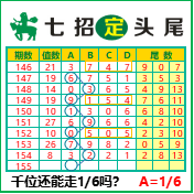 “七招定头尾”第3155期推荐版局规律,本期主攻16千位走第五步.