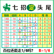 “七招定头尾”第3157期推荐版局规律,本期主攻16百位走第五步.