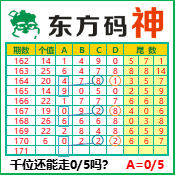 “东方码神”第3171期推荐此隔板规律,本期千位站“05”走第三步.