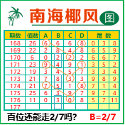 “南海椰风”第3177期推荐版局规律,本期百位27走三步.