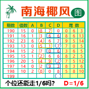 “南海椰风”第3199期推荐版局规律,本期个位16走三步.